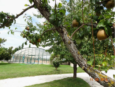 Cerises, Poires, Pèches des vignes, Reines Claude ... et bien d'autres arbres fruitiers : noyers, néflier, cognassier, amandier sauvage, vignes, noisetiers ...
