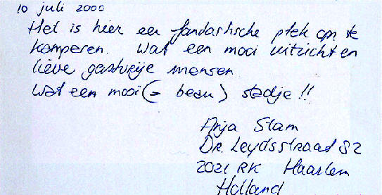 Jeudi 12 juillet (août) je ne suis pas réveillé de la sieste totalement, - Arrosage automatique intégré = pelouse bien verte - Arrivée avec grossesse d'estomac de 6 mois = départ à 9 mois - Gros éclairage automatique dans le ciel = éclair impressionnant - bruit l'accompagnant = tonnerre > pétards de 14 juillet - Bourrasques de vent à vous déraciner une bâche - Eclipse à 80 % = grosse peur. que d'émotions pour garnir ce séjour mais tout ça ne vaut pas la gentillesse et la joie simple de vivre de Michel et Marie-Paule. A bientôt, amicalement Robin, Sylvie et les enfants -PS (n'oublions pas la rose blanche !!! et les corons !!!)